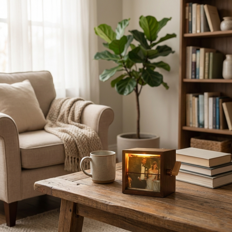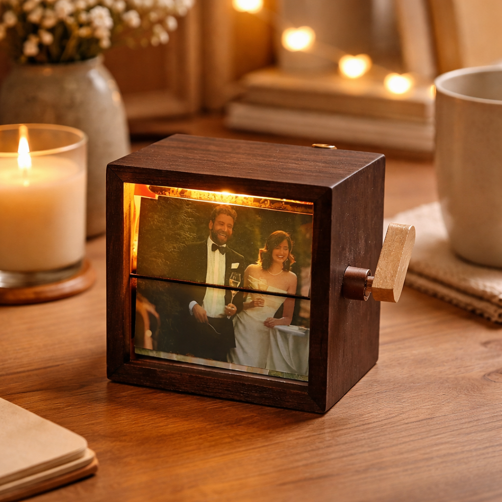 Dzięki ręcznie kręconemu mechanizmowi i subtelnemu podświetleniu LED każda chwila nabiera nowego życia. To coś więcej niż album — to doświadczenie, które angażuje wzrok i serce jednocześnie.